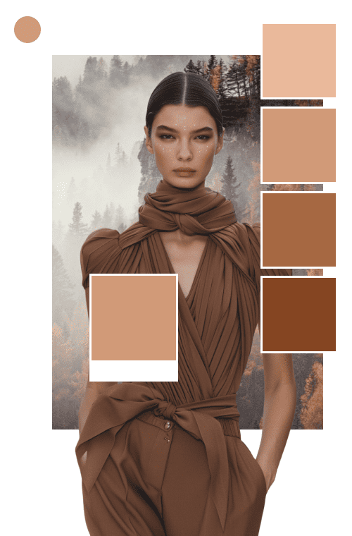 Eres otoño si tienes contraste variable entre ojos, cabello y piel. Cabello con coloración oscura y con toques de calidez. Piel con matices melocotón o subtonos. Ojos con una paleta de colores terrosos, como marrón, avellana o verde oliva.