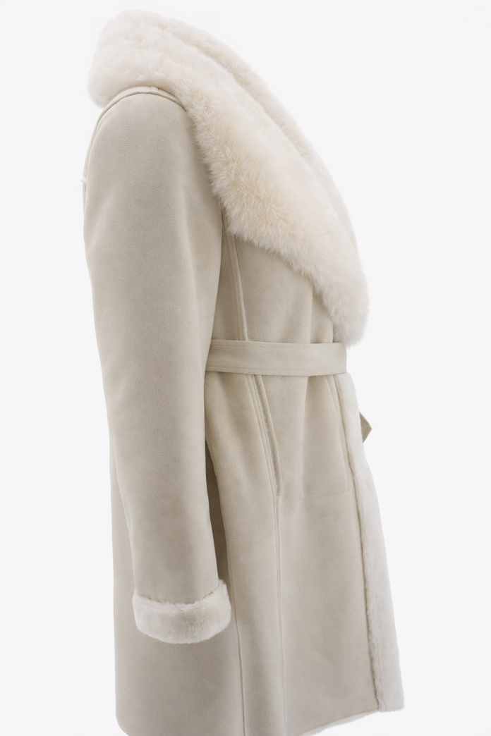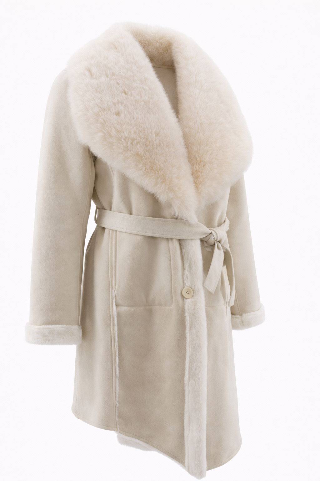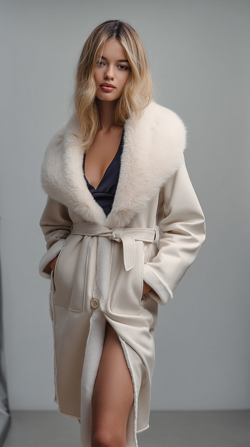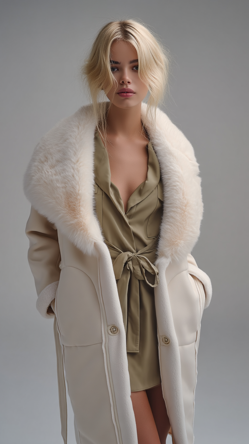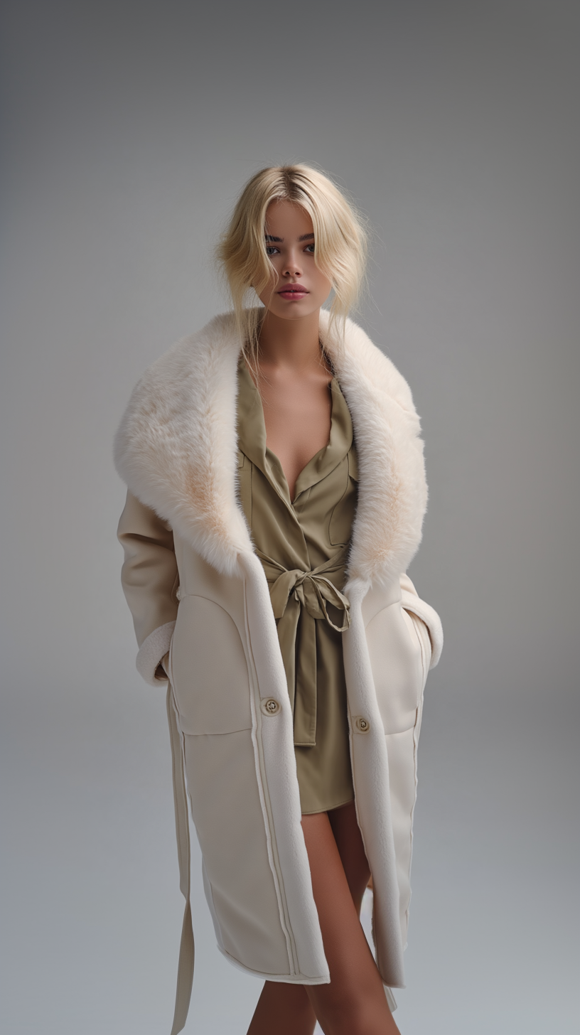 Este abrigo pertenece a la segunda categoría. Una pieza de edición ultra limitada, diseñada para mujeres que entienden la moda como una forma de expresión y estatus. Su silueta elegante, su textura envolvente y su imponente cuello de pelo convierten cada aparición en una declaración de estilo.