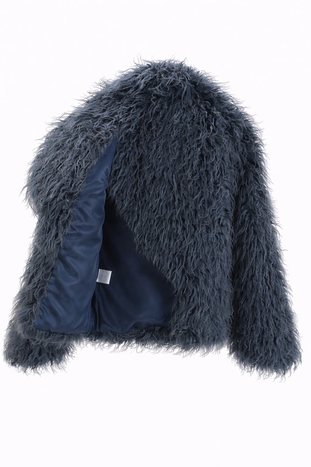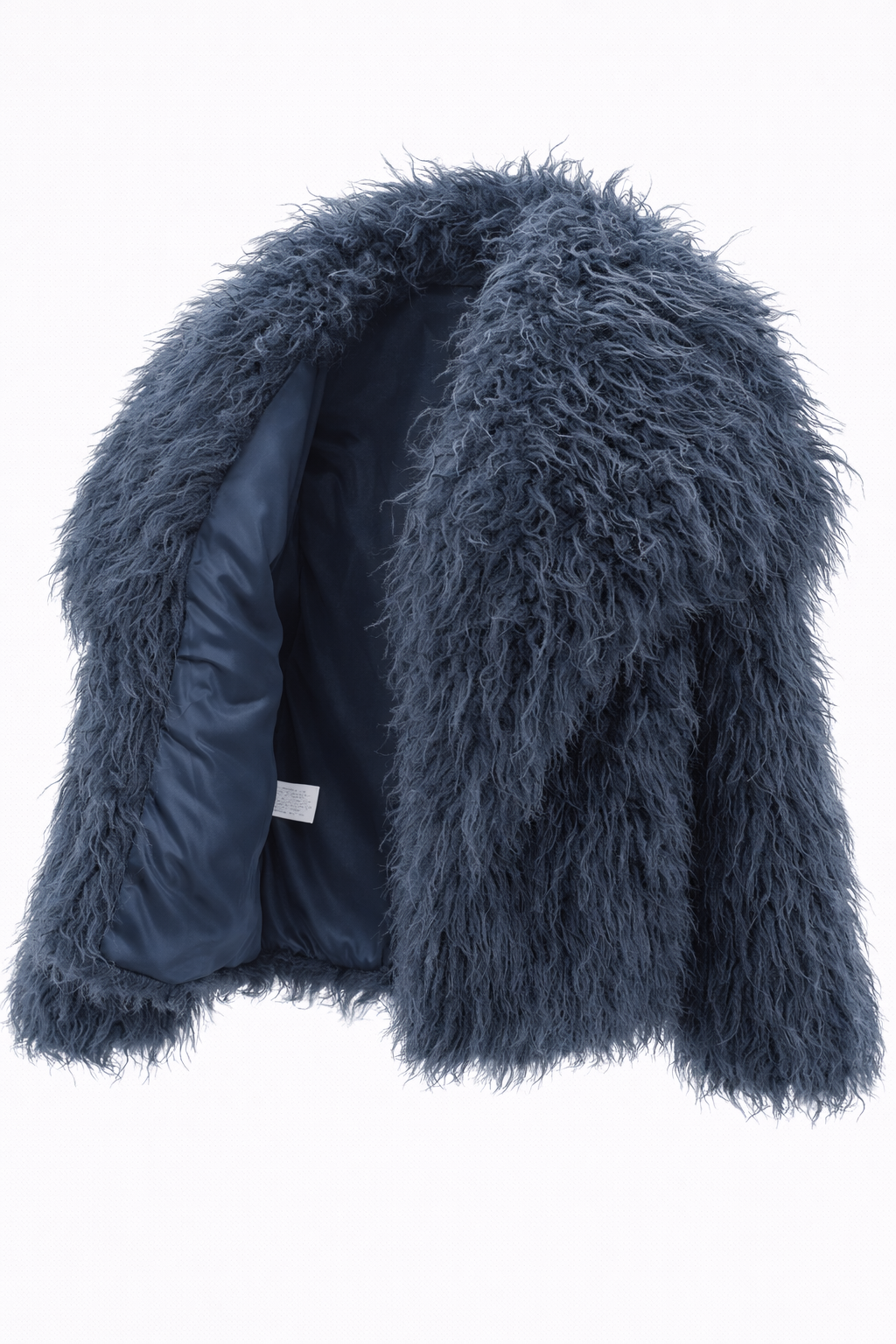 Abrigo en Ecopelo Shaggy | Steel Blue (Azul Acero)