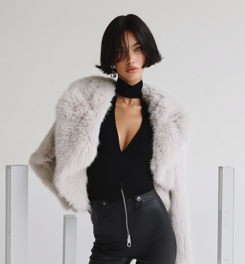 El ICON COAT™ es un abrigo de diseño concebido para estructurar la silueta y aportar una imagen clara y equilibrada. Confeccionado en ecopelo premium de alta densidad (fur-free), presenta un volumen estable y envolvente que acompaña el cuerpo con suavidad, aportando abrigo y continuidad visual sin añadir peso.