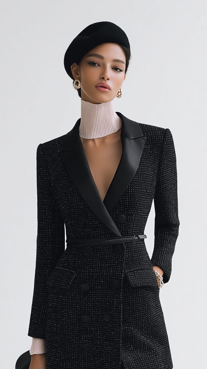 Una pieza de arquitectura nocturna con alma francesa. Hecha en París, este Vestido Blazer reinterpreta el clásico esmoquin desde la sastrería: estructura, presencia y una elegancia que no necesita alzar la voz para dominar la escena.