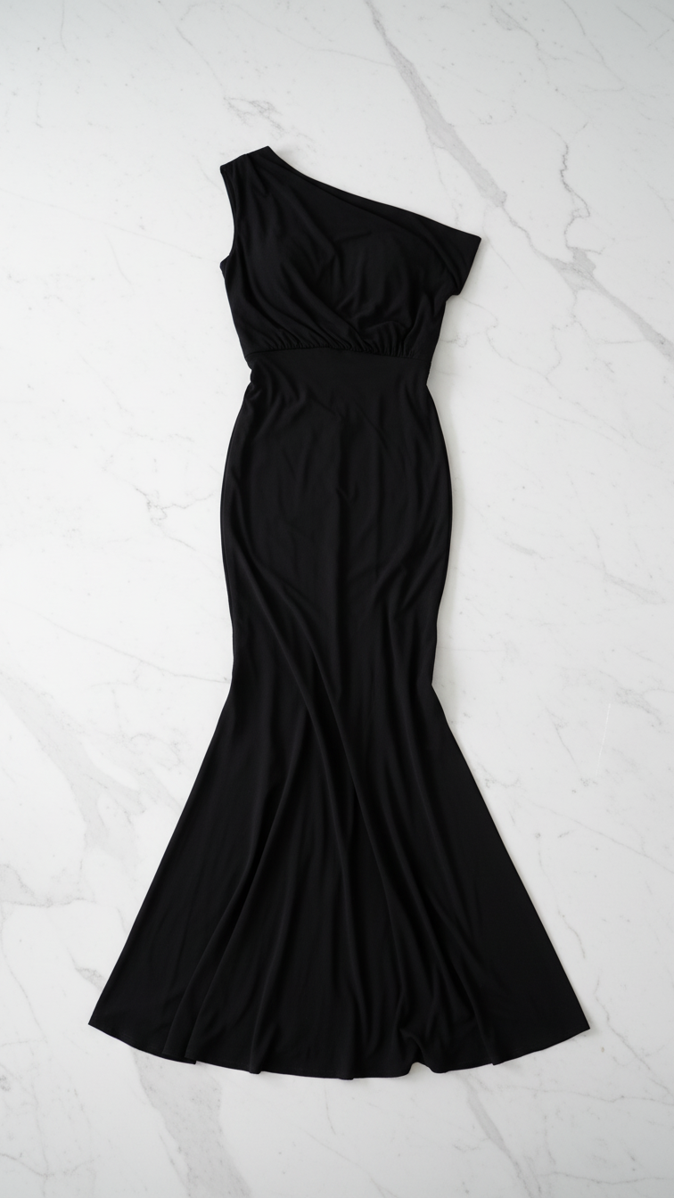 Falda de Línea Sirena: La parte inferior se ajusta con precisión técnica a las caderas, descendiendo en una línea limpia que estiliza el eje vertical y potencia la sensación de longitud infinita.