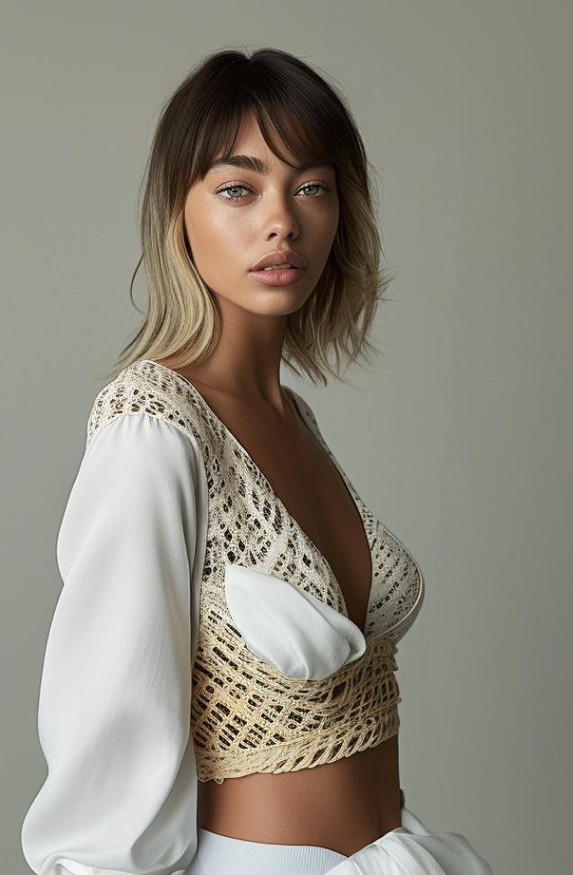 Ponte un top corto: Esto puede sonar un poco contradictorio para ti, ya que el top corto no parece tener nada que ver con camuflar tus hombros anchos. La razón por la que los tops recortados funcionan bien para el triángulo invertido es que llaman la atención sobre la piel que estás mostrando, desviando la mirada lejos de tus hombros.