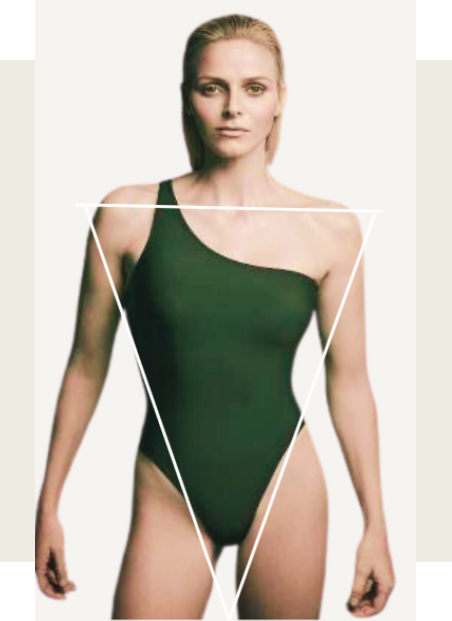 Un cuerpo triángulo invertido se caracteriza por tener los hombros más anchos que las caderas, con una cintura poco definida y una parte inferior más estrecha.
