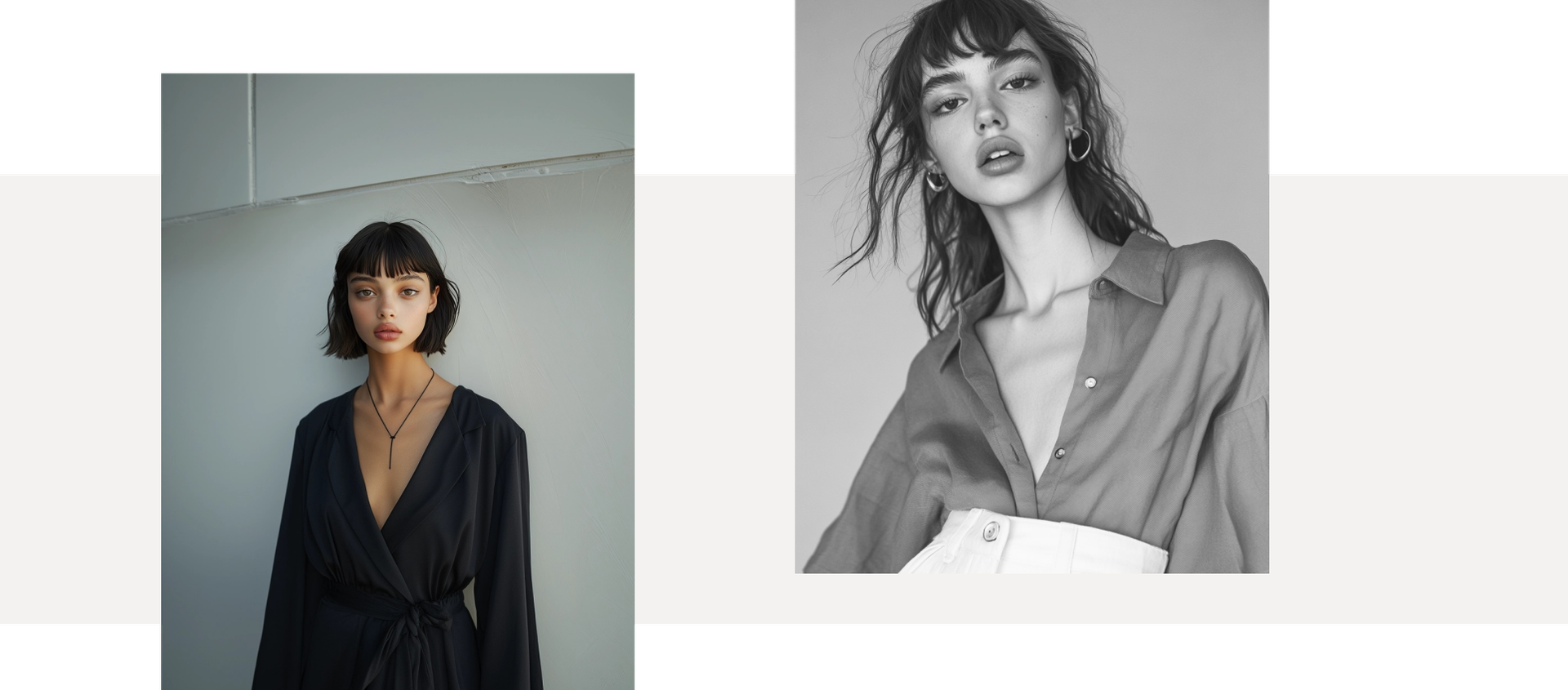 En la imagen de la derecha, utilizan una blazer, vestido y gracias a la apertura sin cierre y bolsillo, crea caderas, equilibrando los volúmenes.